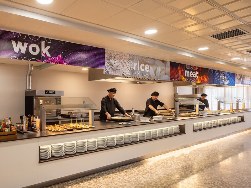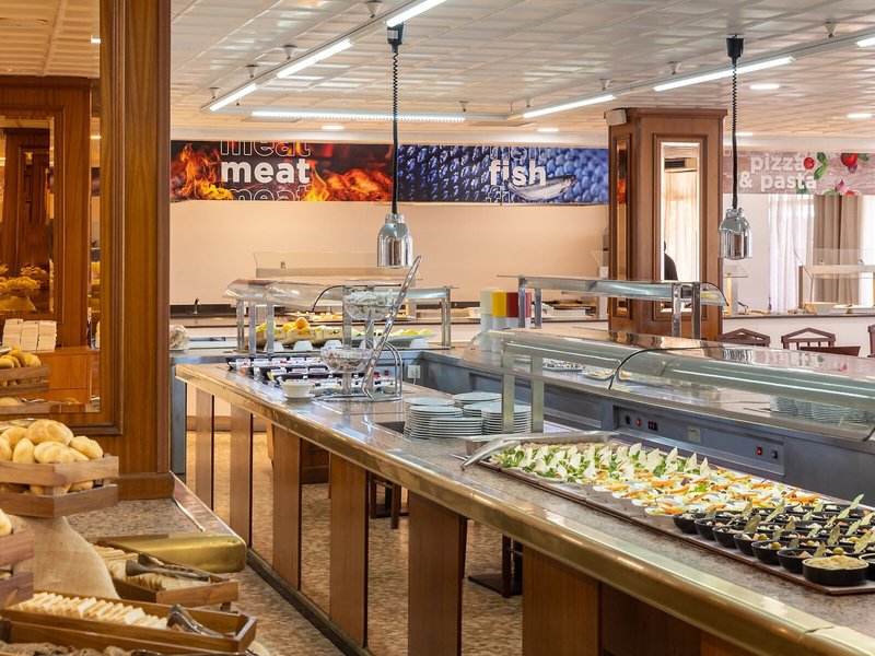 Essen & Trinken: Der gastronomische Bereich wartet mit einem Buffetrestaurant und einer Bar auf. Das Hotel bietet als buchbare Verpflegungsleistungen Übernachtung inkl. Frühstück, Halbpension, Vollpension, All-Inclusive und All-Inclusive-Spezial. Diätgerichte, glutenfreie Mahlzeiten, vegetarische Gerichte, Kindermenüs und laktosefreie Kost werden auf Wunsch zubereitet. Eine besondere Attraktion ist das Showcooking. Die Getränkekarte beinhaltet eine Vielfalt alkoholischer und alkoholfreier Getränke sowie internationale Marken.