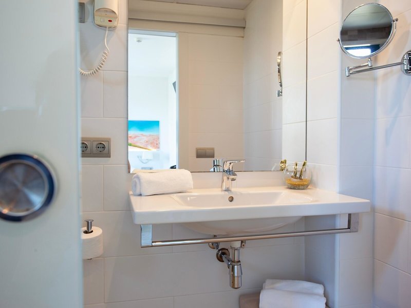 - Double Room (DZX1), Doppelzimmer, Nichtraucherzimmer, im Hauptgebäude, ca. 17 m², letzte Komplettrenovierung 2017, letzte Teilrenovierung 2024, Gesamtanzahl der Räume in diesem Zimmertyp: 1, Aufteilung wie folgt: 1 Schlafzimmer, 2 Einzelbetten (90x190cm), Babybett: ohne Gebühr, Anfrage & Reservierung notwendig, Klimaanlage: ohne Gebühr, individuell regelbar, zentral gesteuert, Heizung: November - April, individuell regelbar, zentral gesteuert, Fußboden: Fliesenboden, Safe: gegen Gebühr, Schreibtisch, Kühlschrank, Telefon, Internet: WLAN/WiFi: ohne Gebühr, Fernseher: Flatscreen, Reinigungsservice: täglich 09:00 Uhr - 15:00 Uhr, Dusche, WC, Föhn, Kosmetikspiegel, Balkon oder Terrasse: mit Sitzgelegenheit