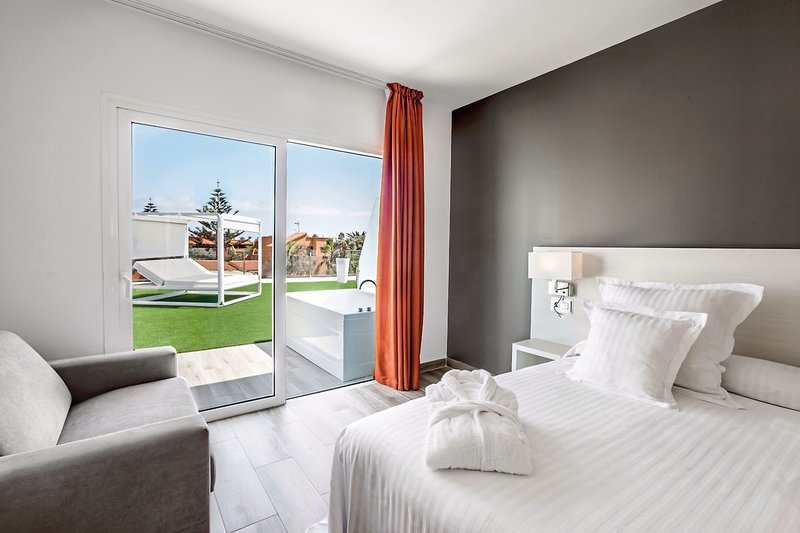 - 41-45 m2, suita, 1 samostatná obývacia izba, gauč, 1 kúpeľňa, sprcha, WC, sušič vlasov, klimatizácia, centrálne ovládanie, minibar (za poplatok), trezor (za poplatok), 1 TV (satelitná TV), WiFi, rýchlovarná kanvica, káva/čaj, balkón alebo terasa