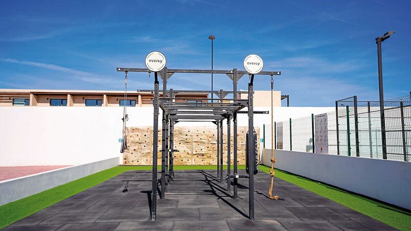 - Fitnessraum: mit Calisthenics-Bereich mit u.a. Gewichten, TRX-Trainingsbändern und Boxsack