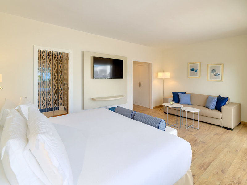 - Junior Suite (JSX1), Doppelzimmer, Mindestalter im Zimmer: 18 Jahre, Poolseite, Poolblick, ca. 40 m², letzte Komplettrenovierung 2018, Gesamtanzahl der Räume in diesem Zimmertyp: 1, Aufteilung wie folgt: kombiniertes Wohn-/Schlafzimmer, Klimaanlage: ohne Gebühr, Mai - Oktober, zentral gesteuert, Fußboden: Fliesenboden, Safe: ohne Gebühr, Sofa, Schreibtisch, Kühlschrank, Kaffeemaschine, Wasserkocher, Minibar: gegen Gebühr, Barzahlung, Softdrinks: gegen Gebühr, Wasser: gegen Gebühr, alkoholische Getränke: gegen Gebühr, Snacks: gegen Gebühr, Telefon, Internet: WLAN/WiFi: ohne Gebühr, Fernseher: Flatscreen, deutsches Programm, Sat-TV, Radio, Reinigungsservice, Dusche, WC, Bademantel, Slipper, Föhn, Balkon oder Terrasse: mit Liegen