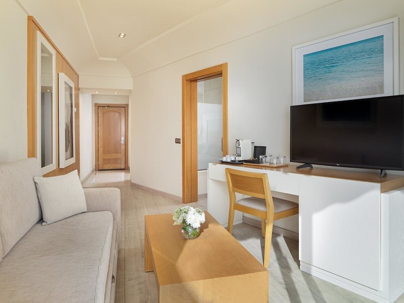 - Suite Premium (SUM1), Suite, Meerseite, Meerblick, ca. 48 m², letzte Komplettrenovierung 2015, letzte Teilrenovierung 2011, Gesamtanzahl der Räume in diesem Zimmertyp: 2, Aufteilung wie folgt: bestehend aus 2 Zimmern, optisch getrennt durch Schiebetür, 1 Doppelbett (200x200cm), Babybett: ohne Gebühr, Anfrage & Reservierung notwendig, Klimaanlage: ohne Gebühr, individuell regelbar, kalt, Fußboden: Laminat, Safe: ohne Gebühr, Sitzecke, Sofa, Schreibtisch, Nespressomaschine, Kaffee-/Teezubereiter, Minibar: gegen Gebühr, Softdrinks: gegen Gebühr, Wasser: gegen Gebühr, alkoholische Getränke: gegen Gebühr, Minibarauffüllung, Telefon, Internet: WLAN/WiFi: ohne Gebühr, Fernseher: im Wohnbereich, im Schlafzimmer, deutsches Programm, Sat-TV, Roomservice: gegen Gebühr, Tageszeitung: ohne Gebühr, Dusche, Badewanne, separates WC, Bademantel: ohne Gebühr, Slipper: ohne Gebühr, Föhn, Kosmetikspiegel, Balkon oder Terrasse: mit Sitzgelegenheit