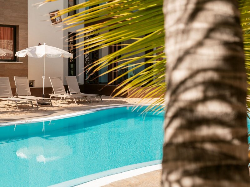 Sport & Fitness: Der Außenpoolbereich bietet erfrischendes Badevergnügen. Auch eine Terrasse mit Sonnenliegen und Sonnenschirmen ist vorhanden. Wohlige Entspannung verspricht der Whirlpool im Badebereich. Im Freizeitbereich bietet die Anlage neben Windsurfen, Tauchen, einem Spa, einem Schönheitssalon und Wandern außerdem kostenpflichtig Billard an.