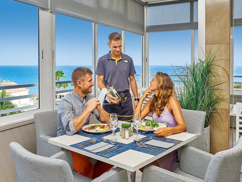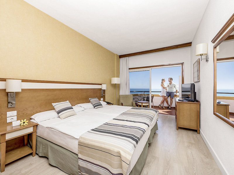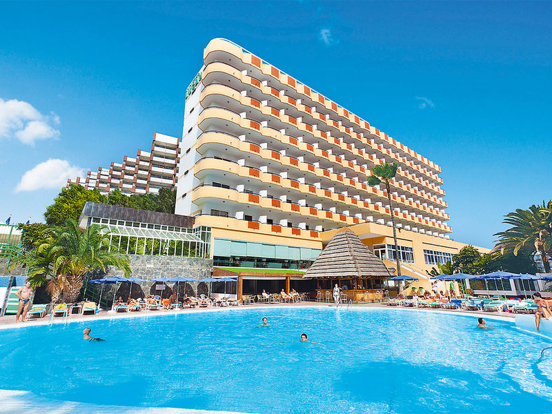 Ausstattung: Beliebtes Ferienhotel mit schönem, über 2 Ebenen angelegtem Garten. 2 Swimmingpools, umgeben von Sonnenterrassen mit Liegen und Schirmen (Badetücher geg. Kaution, Wechsel geg. Gebühr). Pool-/Snackbar mit teilweise überdachter Sitzterrasse. Schöne Dachterrasse mit Liegen und herrlichem Blick über das Meer. Ansprechende, lichtdurchflutete Empfangshalle, Rezeption, WLAN (inklusive), Sitzgruppen, Loungebereich mit Bar und Außenterrasse, Restaurant mit Panoramafenstern und herrlichem Meerblick. Landeskat: 4 Sterne, 182 Zi., 9 Etagen, 2 Lifte.