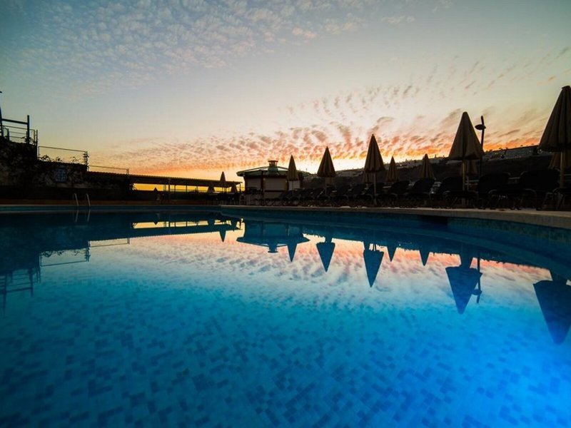 Ausstattung: 2 Pools, Kinderpool. Liegen, Schirme am Pool und am Strand (geg. Geb.), Snackbar, Sonnenterrasse. Empfangshalle, Rezeption, Safe (geg. Geb.). Minimarkt, Parkplatz (geg. Geb.). 45 Zimmer, 6 Etagen, 1 Nebengebäude, 3 Lifte.