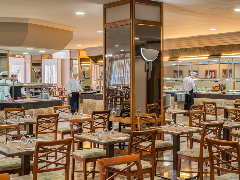 • Hlavná reštaurácia: Kuchyňa: typická pre krajinu, stredomorská, regionálna, španielska, ryby/morské plody, grilované jedlá, bezlepkové jedlá, bezlaktózové jedlá, vegetariánske jedlá, bufet, show cooking, dopyt a rezervácia nie je nutná, január - december , týždenne 7:30 - 10:00 12:30 - 15:00 a 18:30 - 21:15, vysoká stolička, vhodné oblečenie