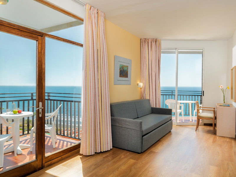 • Výhľad na more (DZM1), dvojlôžková izba, nefajčiarska izba, v hlavnej budove, morská strana, výhľad na more, výhľad do záhrady, cca 23 m², celkový počet izieb v tomto type izby: 1, rozloženie: 1 spálňa , 2 jednolôžka (90x200cm), detská postieľka: zdarma , dopyt a rezervácia nutná, klimatizácia: zdarma, jún - september, centrálne riadená, studená, podlaha: koberec, telefón, Internet: WLAN/WiFi: zdarma poplatok, TV: plochá obrazovka, nemecký program, upratovanie: 8:00 - 16:00, zdarma, vaňa, WC, fén, balkón: s posedením