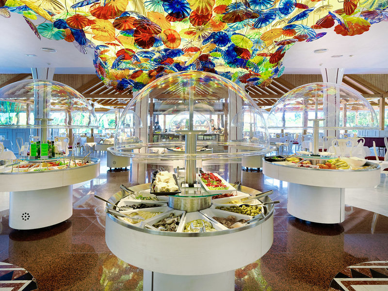 - Hlavná reštaurácia: kuchyňa: medzinárodná, grilované jedlá, bezlepkové jedlá, bezlaktózové jedlá, vegetariánske jedlá, bufet, show cooking, za poplatok, dve jedlá večer, klimatizácia, s terasou, vhodné oblečenie