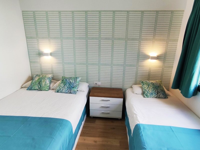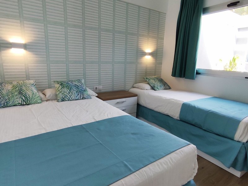 - bungalow with Kitchen (BUX2), Bungalow, zum Innenhof gelegen, ca. 26 m², letzte Komplettrenovierung 2021, Gesamtanzahl der Räume in diesem Zimmertyp: 2, Aufteilung wie folgt: kombiniertes Wohn-/Schlafzimmer, 1 Schlafzimmer, 1 Einzelbett (90x200cm), 1 Doppelbett (135x200cm), 1 Schlafsofa (85x190cm), Klimaanlage: ohne Gebühr, individuell regelbar, kalt, warm, Fußboden: Fliesenboden, Safe: gegen Gebühr, Sitzecke, Sofa, Bügelbrett, Kochnische, Kühlschrank: ohne Gebühr, Kochplatte, Mikrowelle, Kaffeemaschine, Wasserkocher, Toaster, Telefon, Internet: WLAN/WiFi: ohne Gebühr, Fernseher: Flatscreen, im Wohnbereich, deutsches Programm, Sat-TV, Reinigungsservice: ohne Gebühr, Dusche, WC, Föhn, Terrasse: mit Liegestühlen, mit Liegen