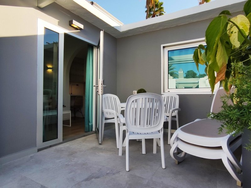 - Bungalow Standard (SUX1), Bungalow, zum Innenhof gelegen, ca. 26 m², letzte Komplettrenovierung 2021, Gesamtanzahl der Räume in diesem Zimmertyp: 2, Aufteilung wie folgt: kombiniertes Wohn-/Schlafzimmer, 1 Schlafzimmer, 1 Einzelbett (90x200cm), 1 Doppelbett (135x200cm), 1 Schlafsofa (85x190cm), Klimaanlage: ohne Gebühr, individuell regelbar, kalt, warm, Fußboden: Fliesenboden, Safe: gegen Gebühr, Sitzecke, Sofa, Schreibtisch, Bügelbrett, Minibar, Telefon, Internet: WLAN/WiFi: ohne Gebühr, Fernseher: Flatscreen, im Wohnbereich, deutsches Programm, Sat-TV, Reinigungsservice: ohne Gebühr, Dusche, WC, Föhn, Terrasse: mit Liegestühlen, mit Liegen