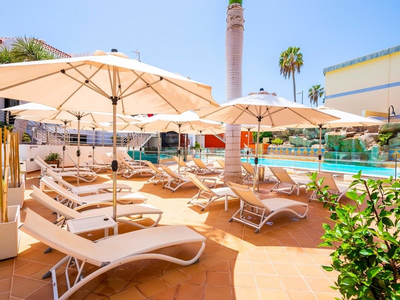 Lage & Umgebung Die Anlage liegt direkt an der oberen Promenade. Der lange Sandstrand und die Dünen sind mit einem Spaziergang entlang der Promenade, über Treppen zu erreichen. Zum Ortskern mit Unterhaltungsmöglichkeiten in den Einkaufszentren „Cita" und „La Sandia" sind es wenige Gehminuten. Ebenfalls in fußläufiger Entfernung befindet sich das Yumbo Center mit Geschäften, Restaurants, Bars und Clubs. Transferzeit: ca. 45 Minuten.