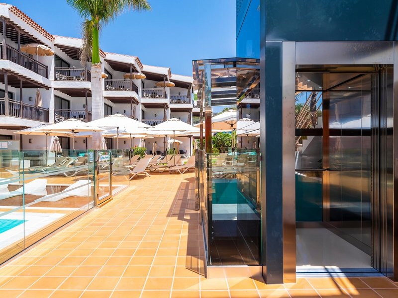 Poloha a okolie Areál sa nachádza priamo na hornej promenáde. Na dlhú piesočnatú pláž a duny sa dostanete prechádzkou po promenáde a po schodoch. Je to len pár minút chôdze do centra mesta s možnosťami zábavy v nákupných centrách Cita" a "La Sandia". V pešej vzdialenosti sa nachádza aj centrum Yumbo s obchodmi, reštauráciami, barmi a klubmi. Čas prenosu: cca 45 minút.