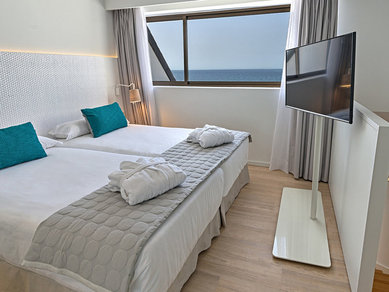 - Dvojlôžková izba s výhľadom na pláž (DZX2), Dvojlôžková izba, Nefajčiarska izba, Minimálny vek v izbe: 16 rokov, Prvý rad pri pláži, Morská strana, Čiastočný výhľad na more, Výhľad na záliv, Približne 30 m², Naposledy kompletne zrekonštruovaná v roku 2017, Celkový počet izieb v tomto type izby: 15, Rozloženie: Kombinovaná obývacia izba/spálňa, 2 samostatné postele (100x200cm), Klimatizácia: bezplatne, január - december, centrálne ovládaná, chladená, Podlaha: Laminátová podlaha, Trezor: bezplatne, Chladnička: bezplatne, Kávovar/čajník, Minibar: Voda: bezplatne, Telefón, Internet: WLAN/WiFi, Televízor: Plochá obrazovka, v spálni, Nemecké kanály, Satelitná TV, Dokovacia stanica pre iPod, Sprcha, WC, Župan, Papuče, Kúpeľňa oddelená sklenenou stenou, Fén, Kozmetické zrkadlo, Terasa: s posedením