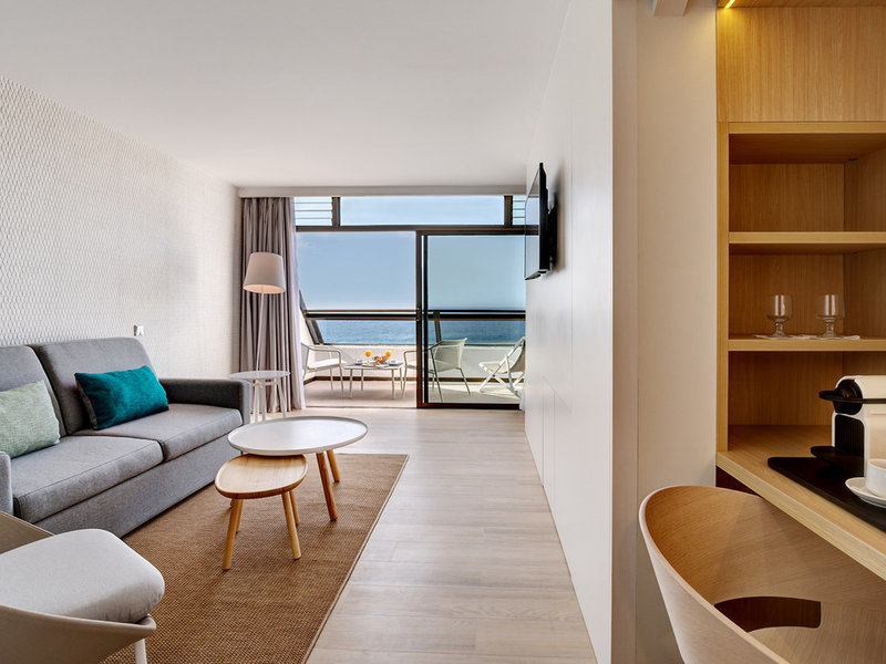 - Suite Duplex Premium Sea View (JSM1), Juniorsuite, Nichtraucherzimmer, erste Strandreihe, Meerseite, Meerblick, ca. 60 m², letzte Komplettrenovierung 2017, Gesamtanzahl der Räume in diesem Zimmertyp: 2, Aufteilung wie folgt: Maisonette, 1 Schlafsofa, Klimaanlage: ohne Gebühr, Januar - Dezember, zentral gesteuert, kalt, Fußboden: Laminat, Safe: ohne Gebühr, Kühlschrank: ohne Gebühr, Kaffee-/Teezubereiter, Telefon, Internet: WLAN/WiFi: ohne Gebühr, Fernseher: Flatscreen, im Wohnbereich, im Schlafzimmer, deutsches Programm, Sat-TV, iPod-Docking Station, Reinigungsservice: täglich, ohne Gebühr, Dusche, Badewanne, WC, separates WC, Bademantel: ohne Gebühr, Slipper: ohne Gebühr, 2 Bäder, Bad durch Glaswand getrennt, Föhn, Kosmetikspiegel, Balkon: mit Liegen, mit Sitzgelegenheit