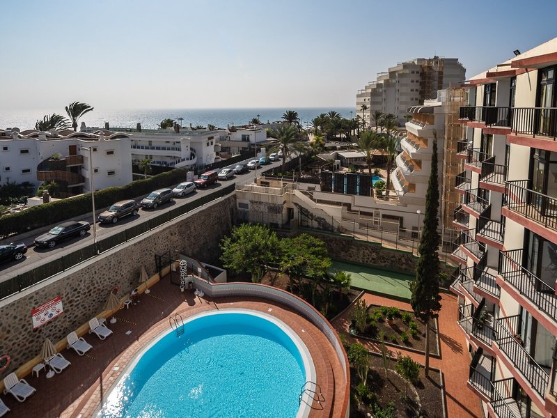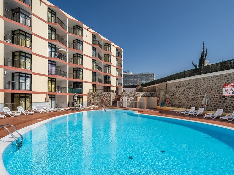Poloha a okolie Tento apartmánový hotel sa nachádza v rušnej oblasti, približne 300 m od pláže, priamo v Playa del Inglés. Odtiaľ môžu dovolenkári na pláži ľahko vyraziť na objaviteľskú cestu a lepšie spoznať svoje dovolenkové miesto. Možnosti zábavy, ako sú bary, reštaurácie a nočné kluby, ako aj rôzne obchody, nie sú príliš ďaleko od ubytovania. Letisko Gran Canaria - Las Palmas (LPA) je vzdialené približne 30 km.