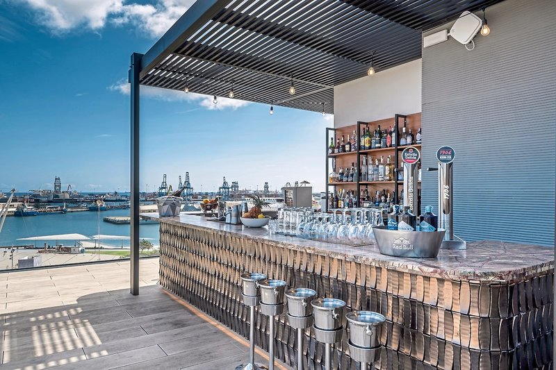 Dachterrasse mit Skybar, Pool und bestem Ausblick auf die Stadt