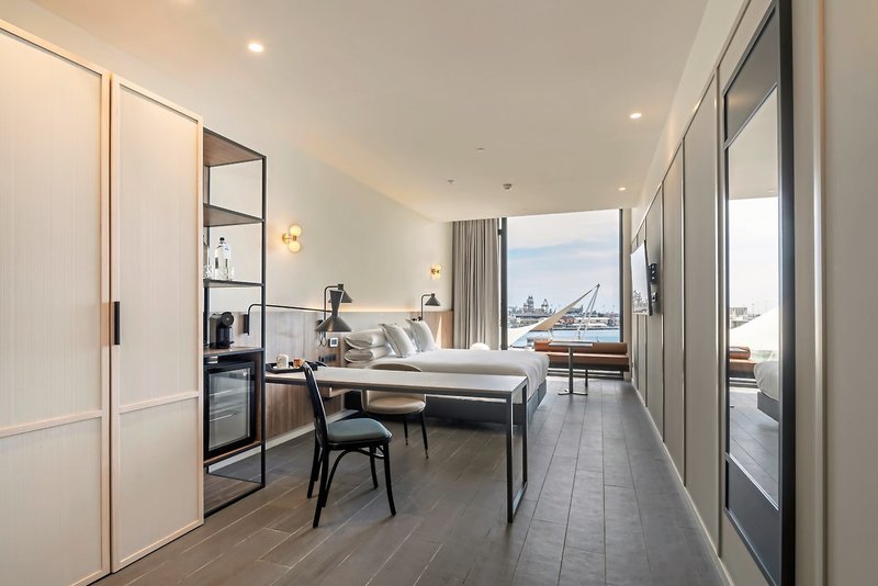 - 26-30 qm, Deluxe, Hafenblick (zum Teil), Schreibtisch, Regendusche, WC, Bademantel, Badeslipper, Haartrockner, Klimaanlage, Minibar kostenpflichtig, Safe, TV (Sat-TV), Wasserkocher, Espressomaschine, Kopfkissen-Menü