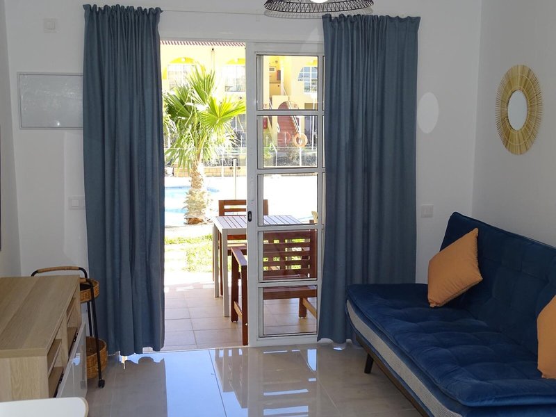 Poloha a okolie Apartmánový komplex sa nachádza v oblasti Campo International Maspalomas na juhu Gran Canaria. Komplex ponúka ideálne miesto na oddych a má ideálnu polohu pre všetku miestnu občiansku vybavenosť a atrakcie. Na trhovisko sa dostanete pešo len za pár minút a neďaleko nájdete nákupné centrum Faro 2. Piesočnatá pláž je vzdialená asi 3 km.
