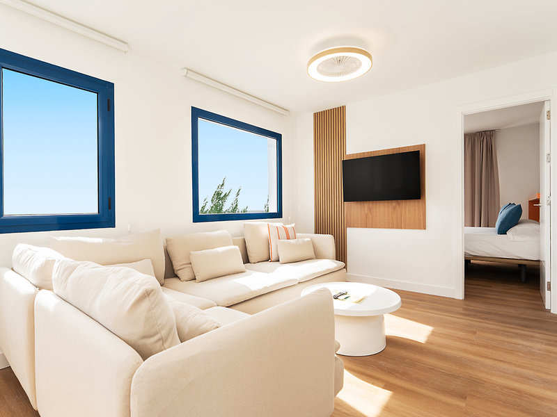 Wohnen: Appartement Typ C (APC; ca. 45 qm), Wohnraum, 2 sep. Schlafzimmer, Kitchenette, TV, Mietsafe, WLAN. Dusche/WC, Föhn. Balkon oder Terrasse. Max. 4E+1K (ab 01.04.26 max. 4E; adults only), zur Alleinnutzung buchbar