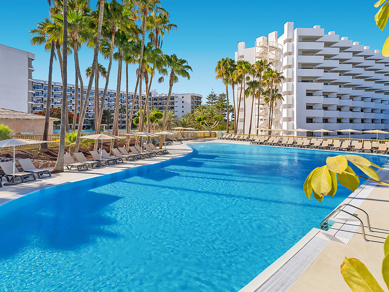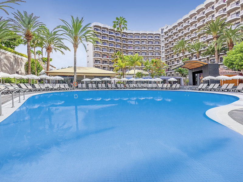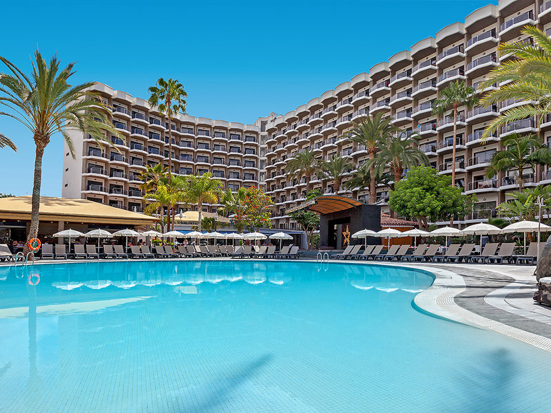 Ausstattung: Modern gestaltetes Ferienhotel für die ganze Familie. Im tropischen Garten mit Schatten spendenden Palmen lädt eine Swimmingpoollandschaft, umgeben von Sonnenterrassen mit Liegen, Schirmen zum Verweilen ein. Pool-/Snackbar. FKK-Dachterrasse mit Panoramablick, separater Royal-Level-Bereich (buchbar unter LPA330). Rezeption, WLAN, Buffetestaurant mit Außenterrasse, Bars. Landeskat.: 4 Sterne, 322 Zi., 8 Etagen, Lifte.