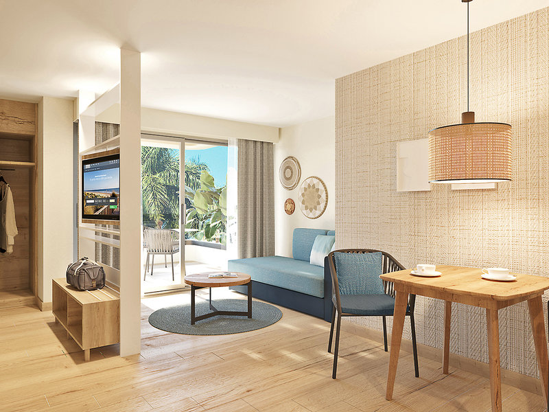 Juniorsuite (JSD, ca. 45 qm, deluxe, ab 16 J.), Klimaanlage, Wohn-/Schlafraum, TV, Mietsafe, WLAN, Minibar. Dusche/WC, Föhn. Balkon/Terrasse mit Gartenblick. Max. 3E+1K