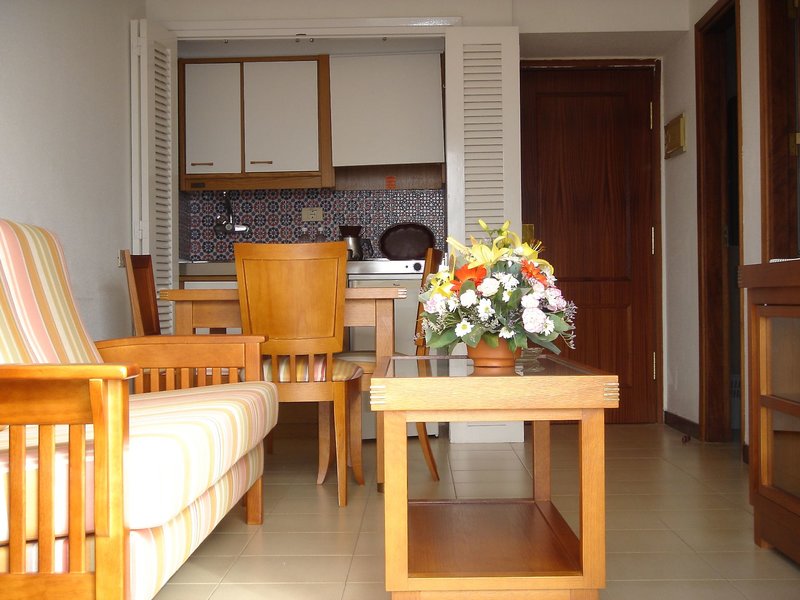 Appartement 1 Schlafzimmer: Die Appartements sind freundlich eingerichtet und verfügen über einen Wohnraum mit Sitzecke und Schlafgelegenheit für die 3. Person. Kitchenette, Sat.-TV, separater Schlafraum, Badezimmer mit Badewanne/WC, Telefon, Wi-Fi gegen Gebühr, Mietsafe und ein möblierter Balkon oder Terrasse (A12).