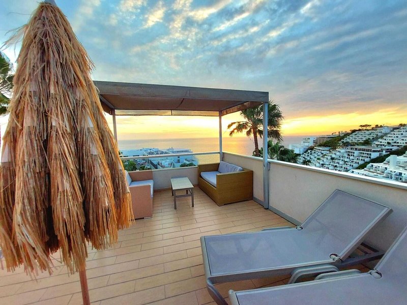 Lage & Umgebung Der Apartmentkomplex liegt oberhalb von Puerto Rico. Terrassenförmig an den Hang gebaut, bietet die weitläufige Anlage eine außergewöhnliche Aussicht auf den Hafen und die Bucht. In der unmittelbaren Umgebung befinden sich Einkaufsmöglichkeiten, Restaurants und Bars. Den Strand erreicht man nach ungefähr 1500 m (regelmäßiger Linienbusverkehr). Eine Anbindung an die öffentlichen Verkehrsmittel liegt etwa 50 m vom Hotel entfernt. Der Flughafen Gran Canaria liegt in ca. 57 km Entfernung.