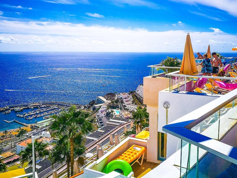 Poloha a okolie Apartmánový komplex sa nachádza nad Portorikom. Rozsiahly komplex postavený na terasách na svahu ponúka výnimočný výhľad na prístav a záliv. V bezprostrednej blízkosti sú obchody, reštaurácie a bary. Na pláž sa dostanete približne po 1500 m (pravidelná autobusová doprava). Napojenie na MHD je cca 50 m od hotela. Letisko Gran Canaria je vzdialené približne 57 km.