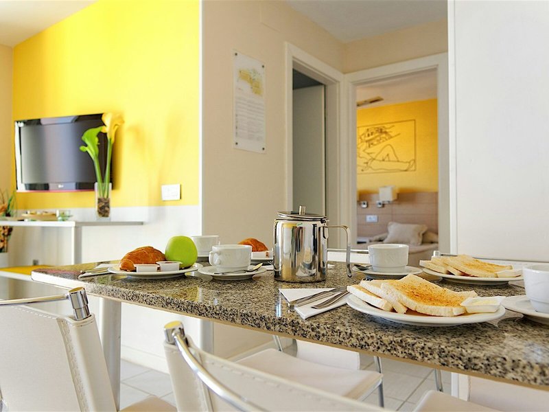 Essen & Trinken: Das Hotel verfügt über einen Speiseraum. Die Gäste werden im Restaurant (Nichtraucher, Buffet und Kinderhochstühle) kulinarisch verwöhnt. Das Apartmenthotel bietet als buchbare Verpflegungsleistungen Übernachtung inkl. Frühstück, Halbpension und All-Inclusive. Ein leckeres und reichhaltiges Buffet erwartet die Gäste zum Frühstück, Mittag- und Abendessen. Diätgerichte, glutenfreie Mahlzeiten, vegetarische Gerichte, Kindermenüs, Bio-Kost, laktosefreie Kost, vegane Kost und Vollwertkost werden auf Wunsch zubereitet. Zusätzlich sind spezielle Verpflegungsangebote und Snacks erhältlich. Eine besondere Attraktion ist das Showcooking. Die Getränkekarte beinhaltet eine Vielfalt alkoholischer und alkoholfreier Getränke sowie internationale Marken und Hausmarken.