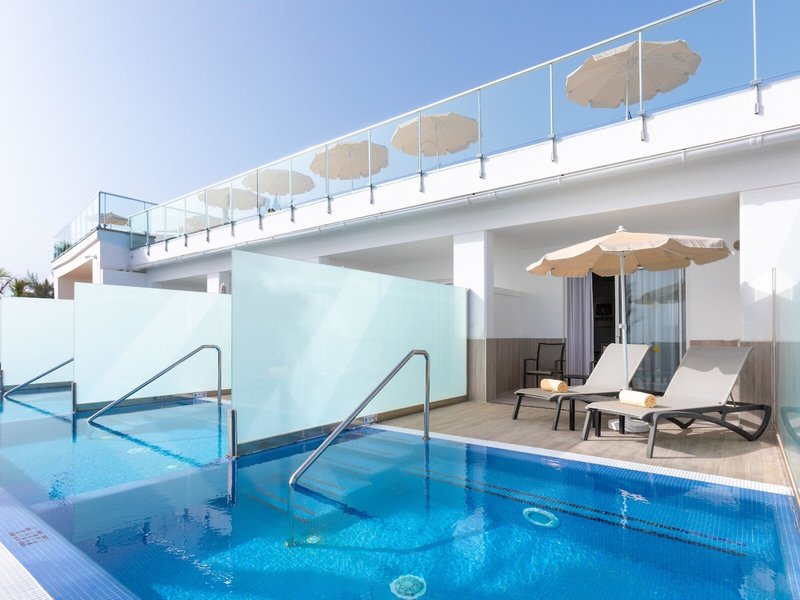- Suita (len pre dospelých) (SUG1), suita, minimálny vek v izbe: 18 rokov, v prístavbe, morská strana, výhľad do záhrady, cca 41 m², celkový počet izieb v tomto type izby: 2, rozloženie takto : kombinovaná obývačka/spálňa, 1 spálňa, 1 rozkladacia pohovka, klimatizácia: centrálne ovládaná, trezor: bez poplatku, stropný ventilátor, dávkovač nápojov, žehlička, žehliaca doska, rýchlovarná kanvica, minibar: bez poplatku, nealko nápoje: bez poplatku, voda : bez poplatku, telefón, Internet: WLAN/WiFi: bez poplatku , TV: plochá obrazovka, nemecký program, satelitná TV, sprcha, WC, župan, sušič vlasov, terasa: s ležadlami, s vlastným bazénom