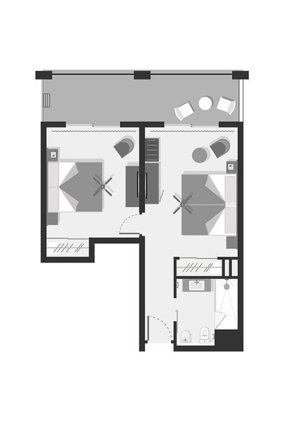 - Die Zimmerkategorien DZG2, DZG3, DZG4, DZX7, DZX8, DZX9 und SUG1 verfügen über 2 Einzelbetten (110x200cm) oder 1 King Size Bett (180x200cm)
