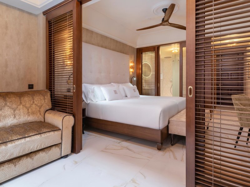 - Junior Suite Deluxe (JSX1), Juniorsuite, Nichtraucherzimmer, Mindestalter im Zimmer: 18 Jahre, im Hauptgebäude, ca. 32 m², letzte Komplettrenovierung 2019, Gesamtanzahl der Räume in diesem Zimmertyp: 1, Aufteilung wie folgt: kombiniertes Wohn-/Schlafzimmer, Klimaanlage: ohne Gebühr, individuell regelbar, kalt, warm, Fußboden: Fliesenboden, Safe: ohne Gebühr, Deckenventilator, Sitzecke, Schreibtisch, Kaffee-/Teezubereiter, Minibar: gegen Gebühr, Softdrinks: gegen Gebühr, Wasser: gegen Gebühr, alkoholische Getränke: gegen Gebühr, Snacks: gegen Gebühr, Minibarauffüllung: täglich, Telefon, Internet: WLAN/WiFi: ohne Gebühr, Fernseher: Flatscreen, im Schlafzimmer, deutsches Programm, Sat-TV, Roomservice: gegen Gebühr, Reinigungsservice: täglich, ohne Gebühr, Regendusche, WC, Bademantel: ohne Gebühr, Slipper: ohne Gebühr, Föhn, Kosmetikspiegel, Balkon oder Terrasse: mit Sitzgelegenheit