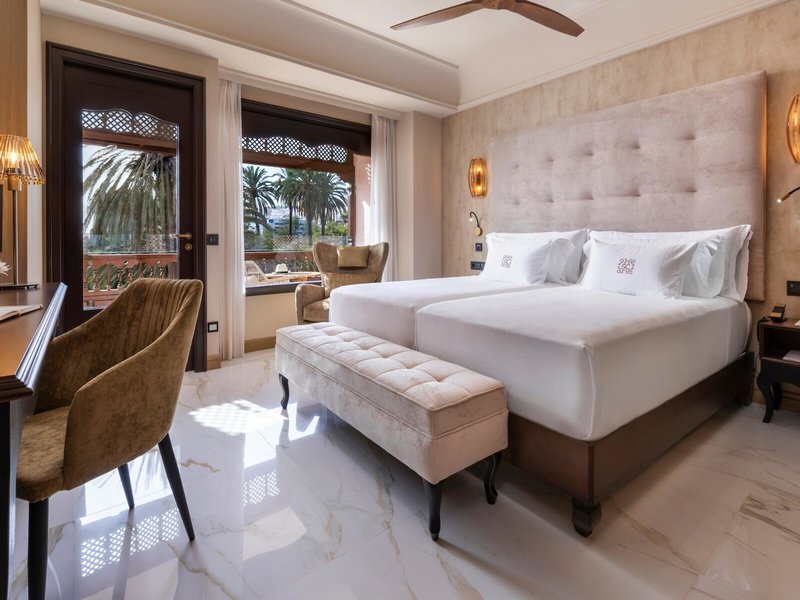 - Junior Suite Deluxe (JSX3), Junior Suite, nefajčiarska izba, minimálny vek v izbe: 18 rokov, v hlavnej budove, cca 32 - 32 m², posledná kompletná rekonštrukcia v roku 2019, celkový počet izieb v tomto type izby. : 1, rozloženie: kombinovaná obývačka/spálňa, 1 manželská posteľ (200x200cm), klimatizácia: individuálne nastaviteľná, studená, teplá, kúrenie: individuálne nastaviteľná, podlaha: dlažba, trezor: zadarmo, stropný ventilátor, sedenie priestor, príslušenstvo na prípravu kávy/čaju, minibar: za poplatok, alkoholické nápoje: za poplatok, Telefón, Internet: WLAN/WiFi, televízia: plochá obrazovka, v spálni, nemecký program, satelitná TV, izbová služba: denne, pre za poplatok, upratovanie: denne, bez poplatku, dažďová sprcha, WC, župan: bez poplatku, papuče, fén, kozmetické zrkadlo, Balkón: s posedením