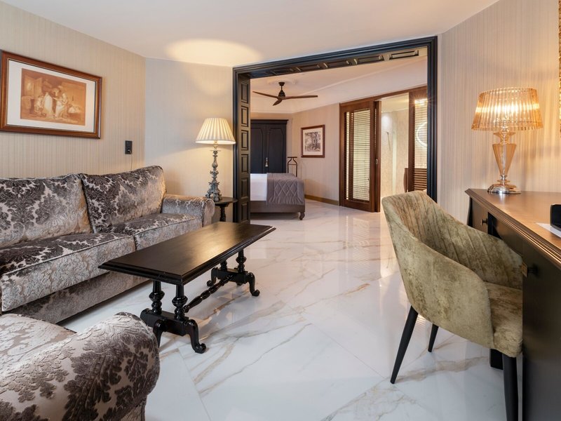 - Suite Deluxe (SUX2), Suite, Nichtraucherzimmer, Mindestalter im Zimmer: 18 Jahre, im Hauptgebäude, ca. 40 m², letzte Komplettrenovierung 2019, Gesamtanzahl der Räume in diesem Zimmertyp: 2, Aufteilung wie folgt: Wohnzimmer, 1 Schlafzimmer, 1 Schlafsofa (200x200cm), Klimaanlage: ohne Gebühr, individuell regelbar, kalt, warm, Fußboden: Fliesenboden, Safe: ohne Gebühr, Deckenventilator, Sitzecke, Sofa, Kaffee-/Teezubereiter, Minibar: gegen Gebühr, Softdrinks: gegen Gebühr, Wasser: gegen Gebühr, alkoholische Getränke: gegen Gebühr, Snacks: gegen Gebühr, Minibarauffüllung: täglich, Telefon, Internet: WLAN/WiFi: ohne Gebühr, Fernseher: Flatscreen, im Schlafzimmer, deutsches Programm, Sat-TV, Roomservice: täglich, gegen Gebühr, Reinigungsservice: täglich, ohne Gebühr, Regendusche, Badewanne, WC, Bademantel: ohne Gebühr, Slipper: ohne Gebühr, Föhn, Kosmetikspiegel