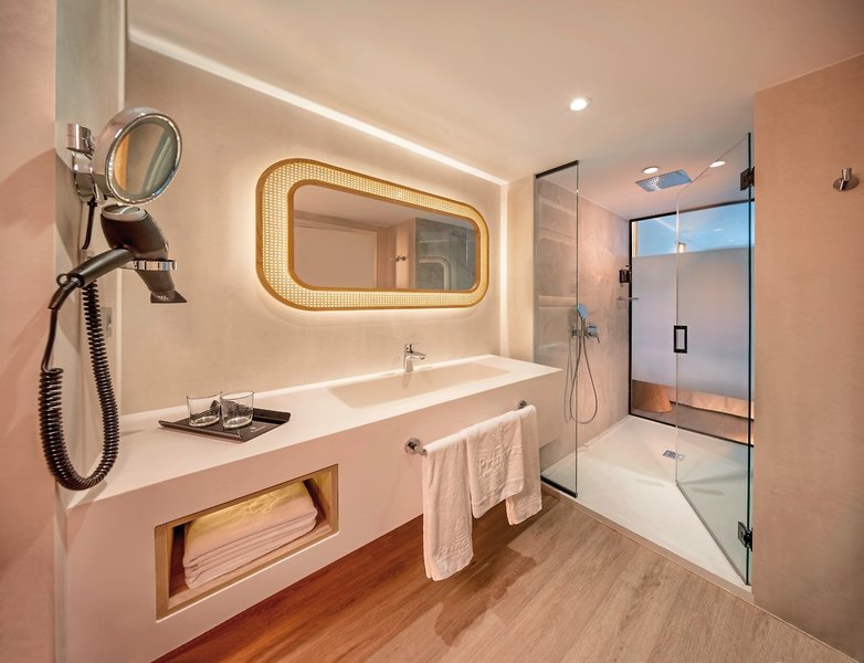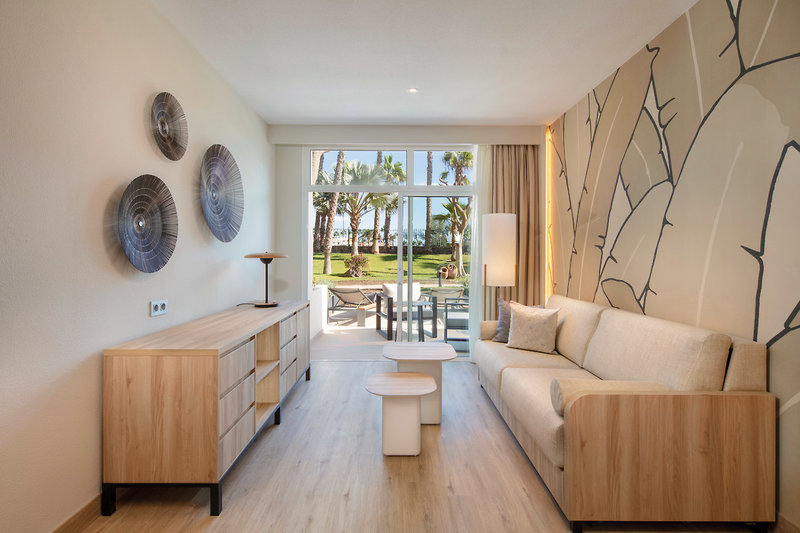 - 36-40 qm, Juniorsuite, kombinierter Wohn-/Schlafraum, Doppelbett, Dusche, WC, Haartrockner, Laminatboden, Klimaanlage, Mini-Kühlschrank, Safe, TV (Smart-TV), Balkon (möbliert)