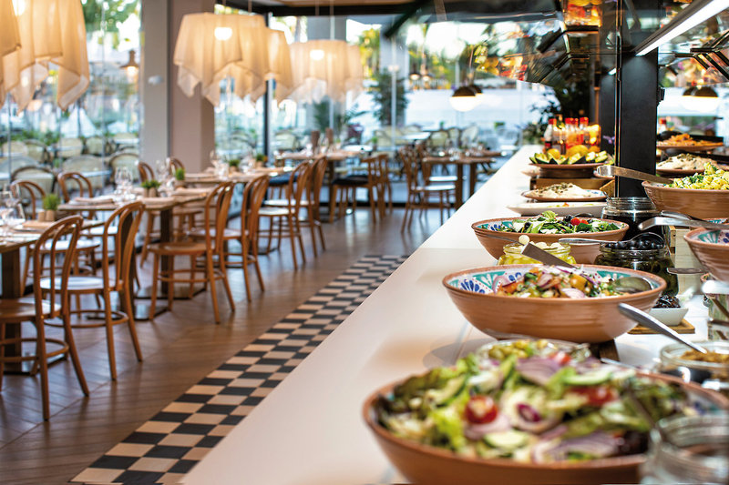 - 5 bufetových reštaurácií: talianska kuchyňa, ázijská kuchyňa, španielska kuchyňa, miestna kuchyňa, medzinárodná kuchyňa, rýchle občerstvenie, špeciality, stanica s varením pred očami, s terasou