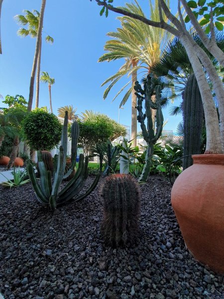 Der Außenbereich besteht aus einem kleinen tropischen Garten mit Salzwasser-Swimmingpool (im Winter beheizbar) und einer Sonnenterrasse mit Liegestühlen und Sonnenschirmen/Schattenplätzen.