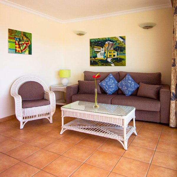 Appartement 1 Schlafzimmer Meerblick (2. Etage): Gleich ausgestattet wie die Appartements 1. Etage, liegen jedoch in der 2. Etage (oberste Etage) und verfügen teilweise über eingeschränkten Meerblick aufgrund des Pflanzenbestandes (2AM).