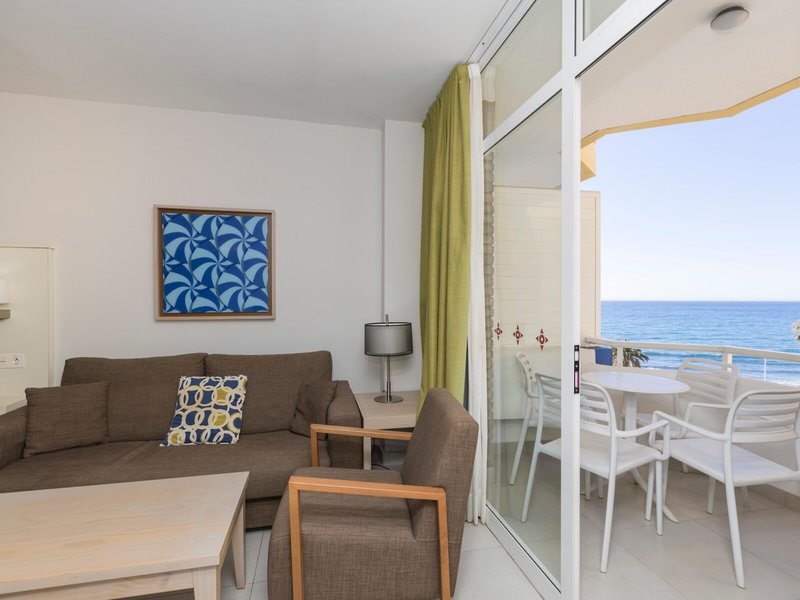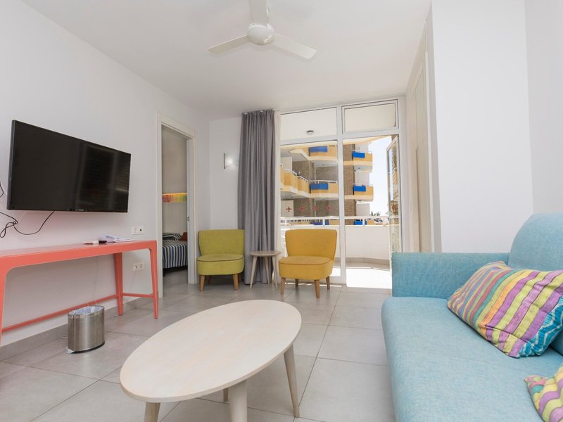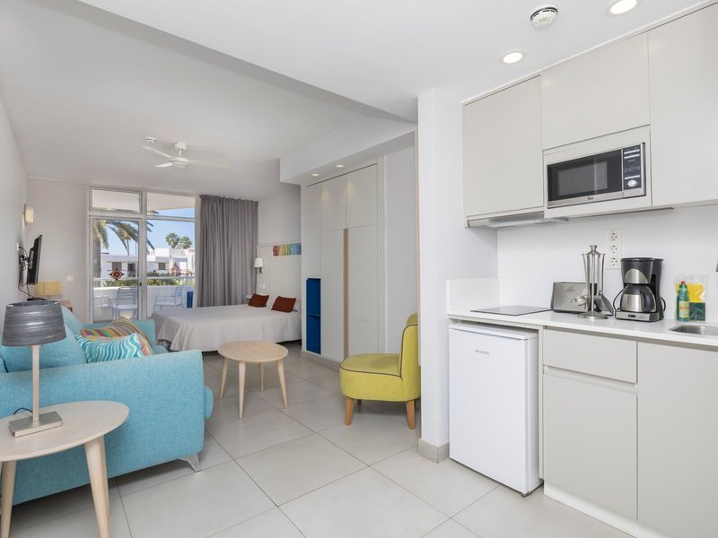 - Promotion Appartment (APZ1), Appartement, Nichtraucherzimmer, im Hauptgebäude, seitlicher Meerblick, Poolblick, ca. 35 - 45 m², letzte Komplettrenovierung 2017, Gesamtanzahl der Räume in diesem Zimmertyp: 2, Aufteilung wie folgt: kombiniertes Wohn-/Schlafzimmer, 1 Schlafzimmer, 4 Einzelbetten, Fußboden: Fliesenboden, Safe: gegen Gebühr, Deckenventilator, Sitzecke, Sofa, Schreibtisch, Kochnische, Kühlschrank: ohne Gebühr, Kochplatte, Mikrowelle, Kaffeemaschine, Kaffee-/Teezubereiter, Wasserkocher, Toaster, Telefon, Internet: WLAN/WiFi: gegen Gebühr, Fernseher: Flatscreen, im Wohnbereich, im Schlafzimmer, deutsches Programm, Reinigungsservice: Sa., Mo.-Fr., ohne Gebühr, Dusche, WC, Föhn, Kosmetikspiegel, Balkon: mit Sitzgelegenheit