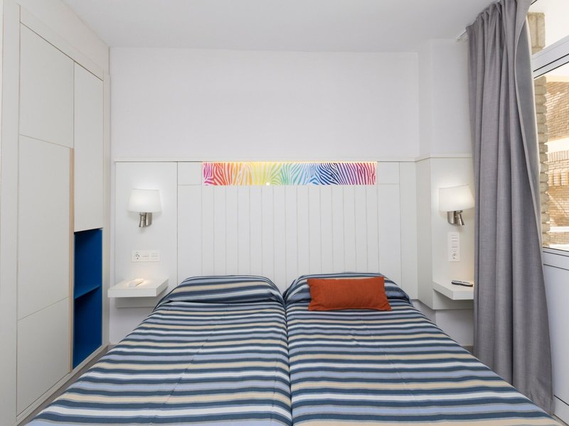 - Promotion Studio (STZ1), Štúdio, nefajčiarska izba, v hlavnej budove, bočný výhľad na more, výhľad na bazén, cca. 25 - 35 m², posledná kompletná rekonštrukcia v roku 2017, posledná čiastočná rekonštrukcia v roku 2017, celkový počet izieb v tomto type izby: 1, rozloženie: kombinovaná obývacia izba/spálňa, 2 samostatné postele (90x200cm), podlaha: dlažba, trezor (za poplatok), stropný ventilátor, posedenie, pohovka, kuchynský kút, chladnička (zadarmo), varná doska, mikrovlnná rúra, kávovar, kávovar/čajník, rýchlovarná kanvica, hriankovač, telefón, internet: WLAN/WiFi (za poplatok), plochá TV s nemeckými programami, upratovacia služba: sobota, po-piatok, zadarmo, sprcha, WC, fén, kozmetické zrkadlo, balkón: so sedením