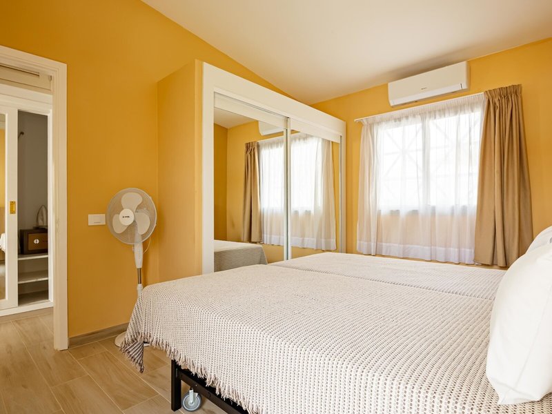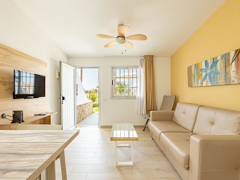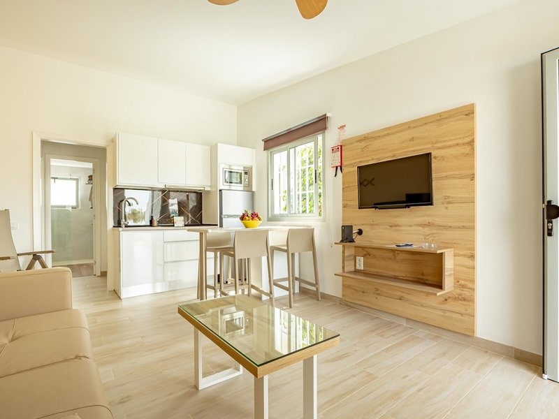 - Bungalow (BUX1), Bungalow, Nichtraucherzimmer, Poolseite, Poolblick, ca. 35 m², letzte Komplettrenovierung 2025, Gesamtanzahl der Räume in diesem Zimmertyp: 2, Aufteilung wie folgt: Wohnzimmer, 1 Schlafzimmer, 2 Einzelbetten (80x200cm), 1 Schlafsofa (150x200cm), Klimaanlage: ohne Gebühr, Fußboden: Laminat, Safe: ohne Gebühr, Deckenventilator, Standventilator, Bügeleisen, Bügelbrett, Küche, Kühlschrank: ohne Gebühr, Gas/E-Herd, Mikrowelle, Kaffeemaschine, Kaffee-/Teezubereiter, Wasserkocher, Toaster, Esstisch, Internet: WLAN/WiFi: ohne Gebühr, Fernseher: Flatscreen, im Wohnbereich, Dusche, WC, Föhn, Terrasse: mit Sitzgelegenheit, mit Grill