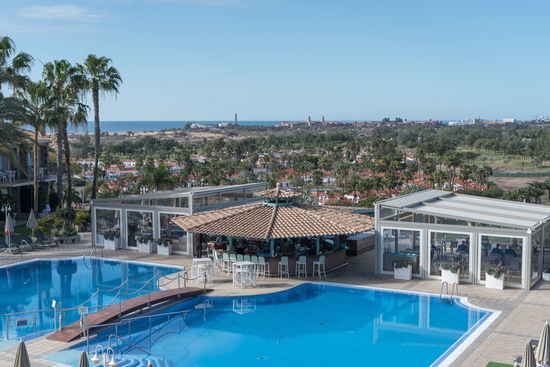 Von hier aus hat man einen unübertrefflichen Panoramablick über den Golfplatz, die Dünen bis hin zum Leuchtturm von Maspalomas sowie über das Meer.