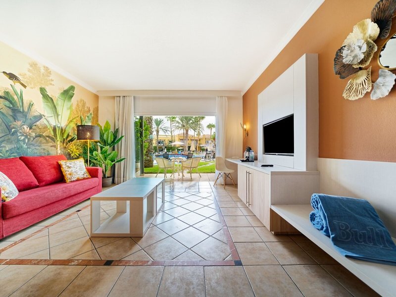 - Junior Suite, Pool View (JSX1), Juniorsuite, im Hauptgebäude, Poolblick, ca. 45 m², letzte Komplettrenovierung 2015, letzte Teilrenovierung 2015, Gesamtanzahl der Räume in diesem Zimmertyp: 2, Aufteilung wie folgt: Wohnzimmer, 1 Schlafzimmer, 2 Einzelbetten (100x200cm), 1 Schlafsofa (135x180cm), Babybett: ohne Gebühr, Anfrage & Reservierung notwendig, Klimaanlage: Januar - Dezember, individuell regelbar, kalt, Fußboden: Fliesenboden, Safe: Barzahlung, pro Tag ca. 3 EUR, Sofa, Schreibtisch, Kühlschrank: ohne Gebühr, Mikrowelle, Kaffee-/Teezubereiter, Telefon, Internet: WLAN/WiFi: ohne Gebühr, Fernseher: Flatscreen, im Wohnbereich, im Schlafzimmer, Badewanne oder Dusche, WC, Föhn, Kosmetikspiegel, Balkon oder Terrasse: mit Sitzgelegenheit