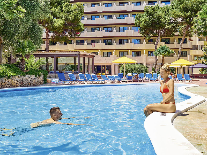 Ausstattung: Komfortables Ferienhotel, bestehend aus 2 Wohngebäuden, mit Gartenbereich und mediterranen Pflanzen. Den Mittelpunkt der Außenanlage bildet der Swimmingpool mit Liegen, Bali-Betten, Schirmen und kleiner Liegewiese. Ein beliebter Treffpunkt ist die Pool-/Snackbar mit großer Sonnenterrasse. Empfangsbereich mit Rezeption, Sitzgelegenheiten, WLAN, Aufenthaltsraum, Fernsehecke, Buffetrestaurant und Bar. Landeskategorie: 3 Sterne, 157 Wohneinheiten, 7 Etagen, Lift.
