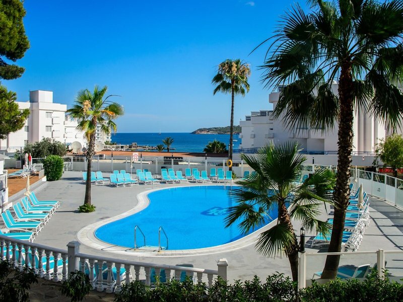 Lage & Umgebung Das Hotel befindet sich ca. 3,5 km von San Antonio und einige Meter vom Strand Punta Xinxó entfernt. In der Umgebung des Hotels finden sich zahlreiche Geschäfte und Restaurants. Es gibt ausgezeichnete Verbindungen mit öffentlichen Verkehrsmitteln.Von einer Bushaltestelle einige Meter vor dem Hotel fahren Busse zu den nächsten Stränden und nach San Antonio. Am Strand kann man eine Fähre nutzen, der Anleger liegt etwa 200 m vom Hotel entfernt. Den Flughafen erreichen Sie nach ca. 23 km.