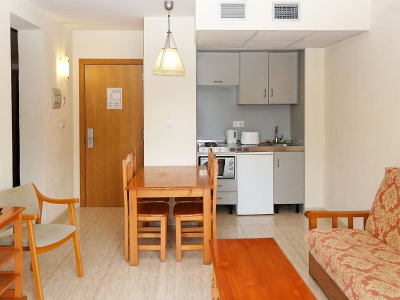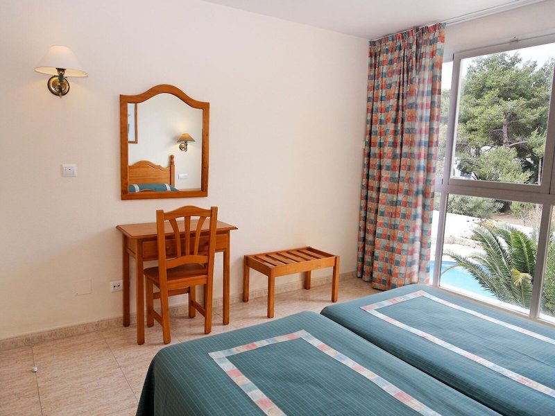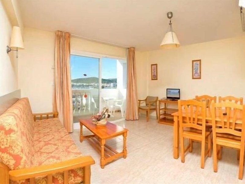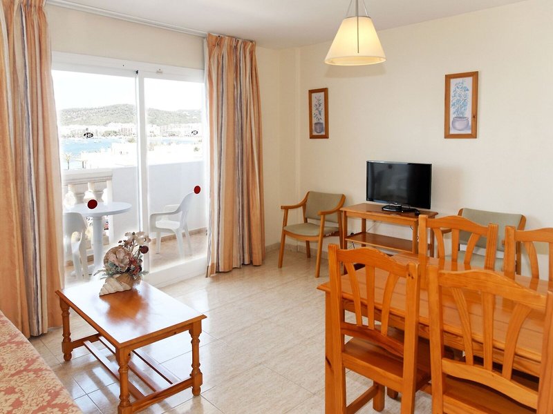 Poloha a okolie: Apartmánový komplex sa nachádza v tichej oblasti. Zastávka verejnej dopravy sa nachádza v blízkosti. Reštaurácie, bary a obchody sú vzdialené približne 50 metrov. Pláž a more sú tiež v pešej vzdialenosti. Známe Cafe del Mar je vzdialené len 5 minút jazdy autom. Diskotéky a mesto a turistické centrum San Antonio sú vzdialené približne 500 metrov. Ibiza je vzdialená približne 15 kilometrov.