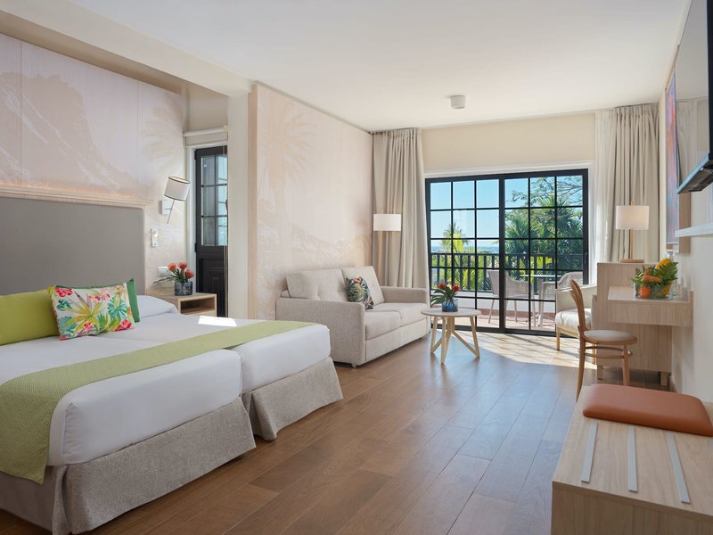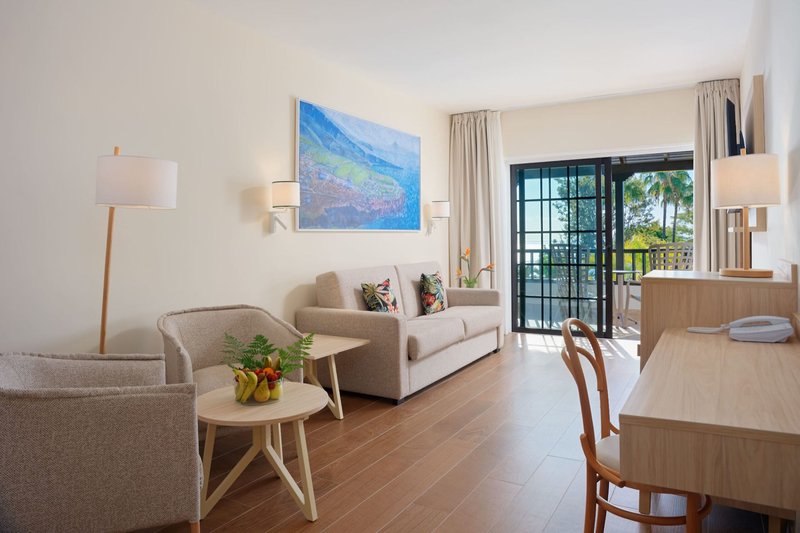 Junior Suite Laurisilva (cca 56 m²): Rovnaké vybavenie ako dvojlôžkové izby Oasis, ale s priestrannou, samostatnou obývacou izbou a županom, príslušenstvom na prípravu čaju/kávy (kávovar/kapsuly) a výhľadom do záhrady, bočným výhľadom na more alebo výhľadom na more (JS2).