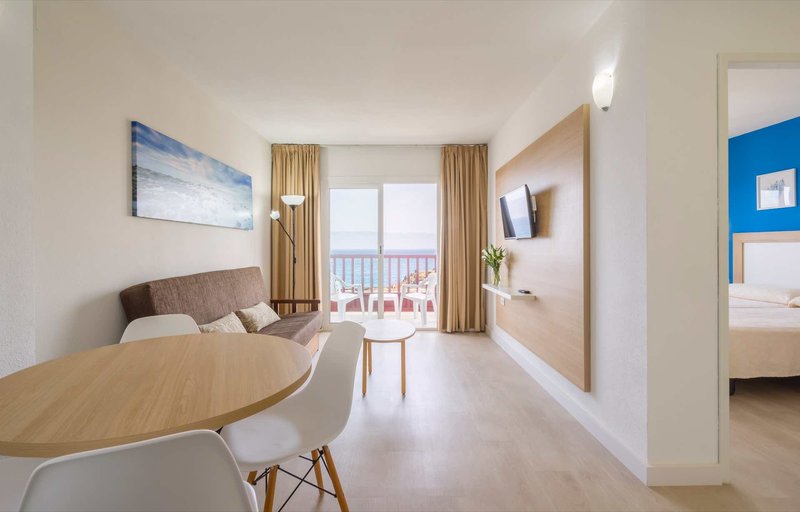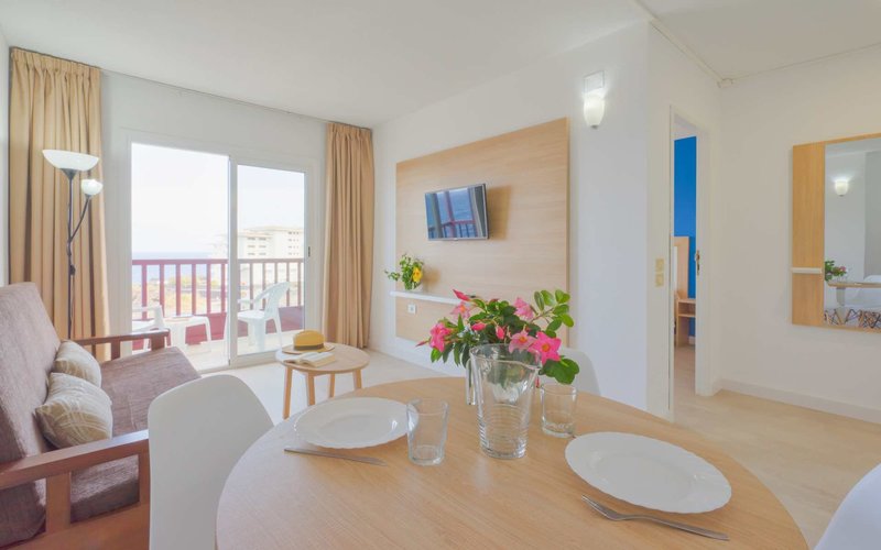 Apartmán 1 spálňa: Prepojená obývacia izba s rozkladacou pohovkou, kuchynský kút s rúrou a sklokeramickou doskou, mikrovlnná rúra, kávovar, rýchlovarná kanvica, TV (len miestne španielske programy), telefón, trezor na prenájom, samostatná spálňa, zrekonštruovaná kúpeľňa so sprchou a WC, balkón alebo terasu (A12).