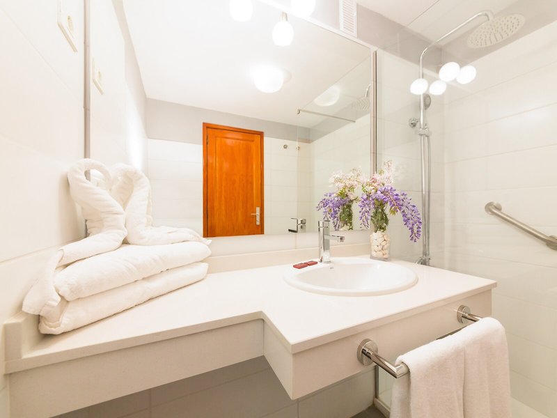 So wohnen Sie: Die Gäste können den Meerblick von Balkon oder Terrasse genießen. Die Zimmer verfügen über ein Sofabett. Es gibt separate Schlafzimmer. Kinderbetten für die jüngsten Gäste sind ebenso vorhanden. Wertsachen können in einem Safe sicher aufbewahrt werden. Auch ein Kühlschrank, ein Herd, eine Mikrowelle und eine Tee-/Kaffeemaschine sind vorhanden. Eine Hosenpresse ist für den zusätzlichen Komfort der Gäste verfügbar. Darüber hinaus sind ein Telefon mit Direktwahl, ein TV-Gerät und WiFi (ohne Gebühr) vorhanden. Im Badezimmer, ausgestattet mit einer Dusche und einer Badewanne, gibt es einen Haartrockner. Außerdem sind rollstuhlgerechte Zimmer buchbar. Für Eltern mit Kindern stehen Familienzimmer zur Verfügung.