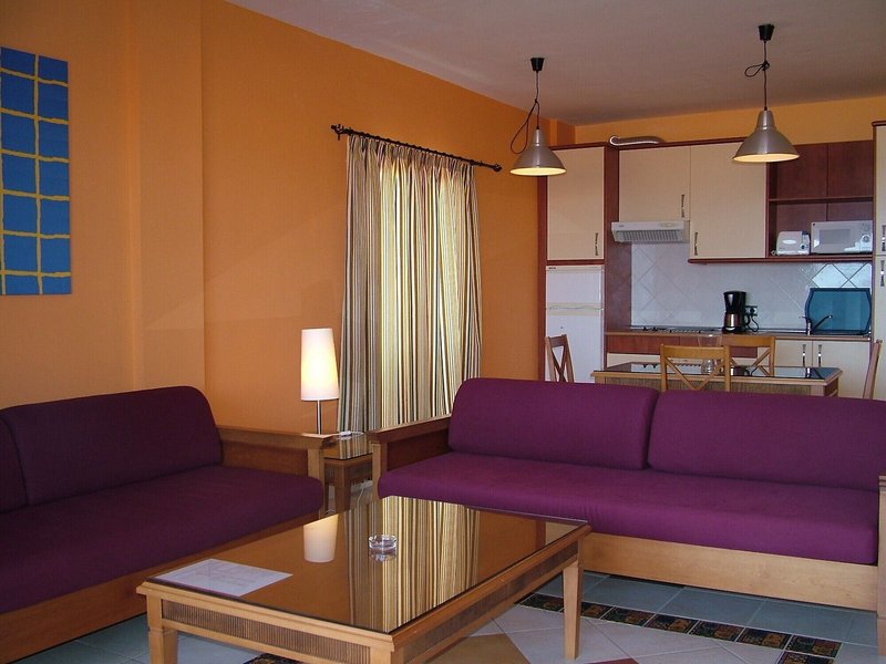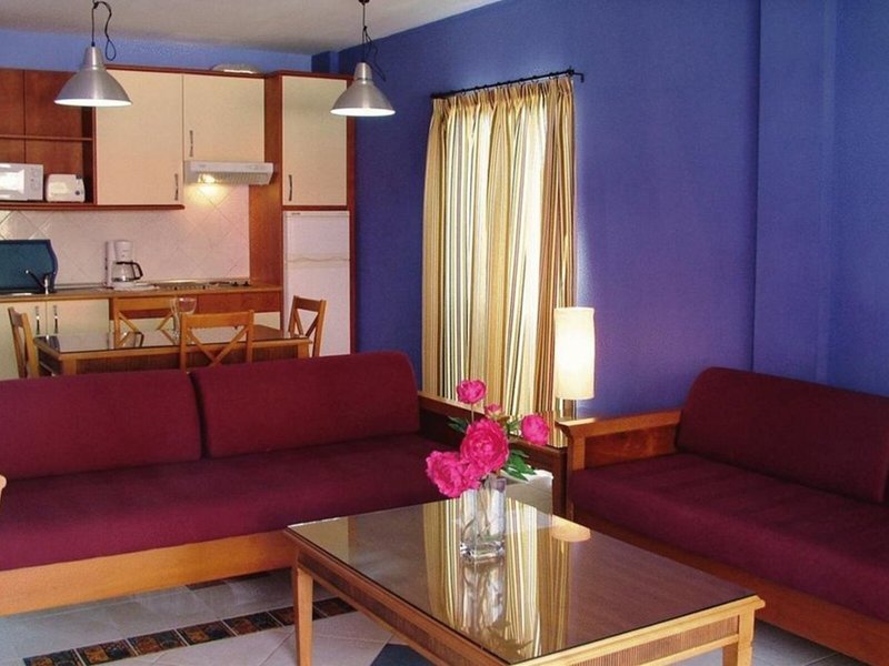 Ubytovanie: Klimatizácia a ventilátor zabezpečujú príjemnú vnútornú klímu. Väčšina izieb má balkón alebo súkromnú terasu, kde si hostia môžu oddýchnuť a vychutnať si výhľad na more. Izby sú vybavené manželskou posteľou alebo rozkladacou pohovkou. K dispozícii sú samostatné spálne. K dispozícii je aj detská postieľka a prístelka. K dispozícii je aj trezor, minibar a písací stôl. Kuchynka je dobre vybavená na vlastné varenie s chladničkou, sporákom, mikrovlnnou rúrou, zariadením na prípravu čaju/kávy a rúrou. Pre pohodlie hostí je k dispozícii žehliaca súprava. K dispozícii je aj telefón s priamou voľbou, TV so satelitnými/káblovými programami a Wi-Fi pripojenie (bezplatné). Kúpeľňa so sprchovacím kútom a vaňou je vybavená sušičom vlasov. Pre väčšie pohodlie sú k dispozícii toaletné potreby a výber uterákov. K dispozícii sú aj bezbariérové izby s bezbariérovou kúpeľňou. Apartmánový komplex ponúka rodinné izby a 38 nefajčiarskych izieb.